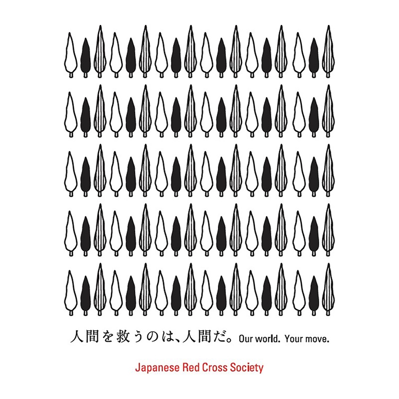 赤十字のシンボルツリーをデザインしたマチ無しのシンプルなコットンバッグです。